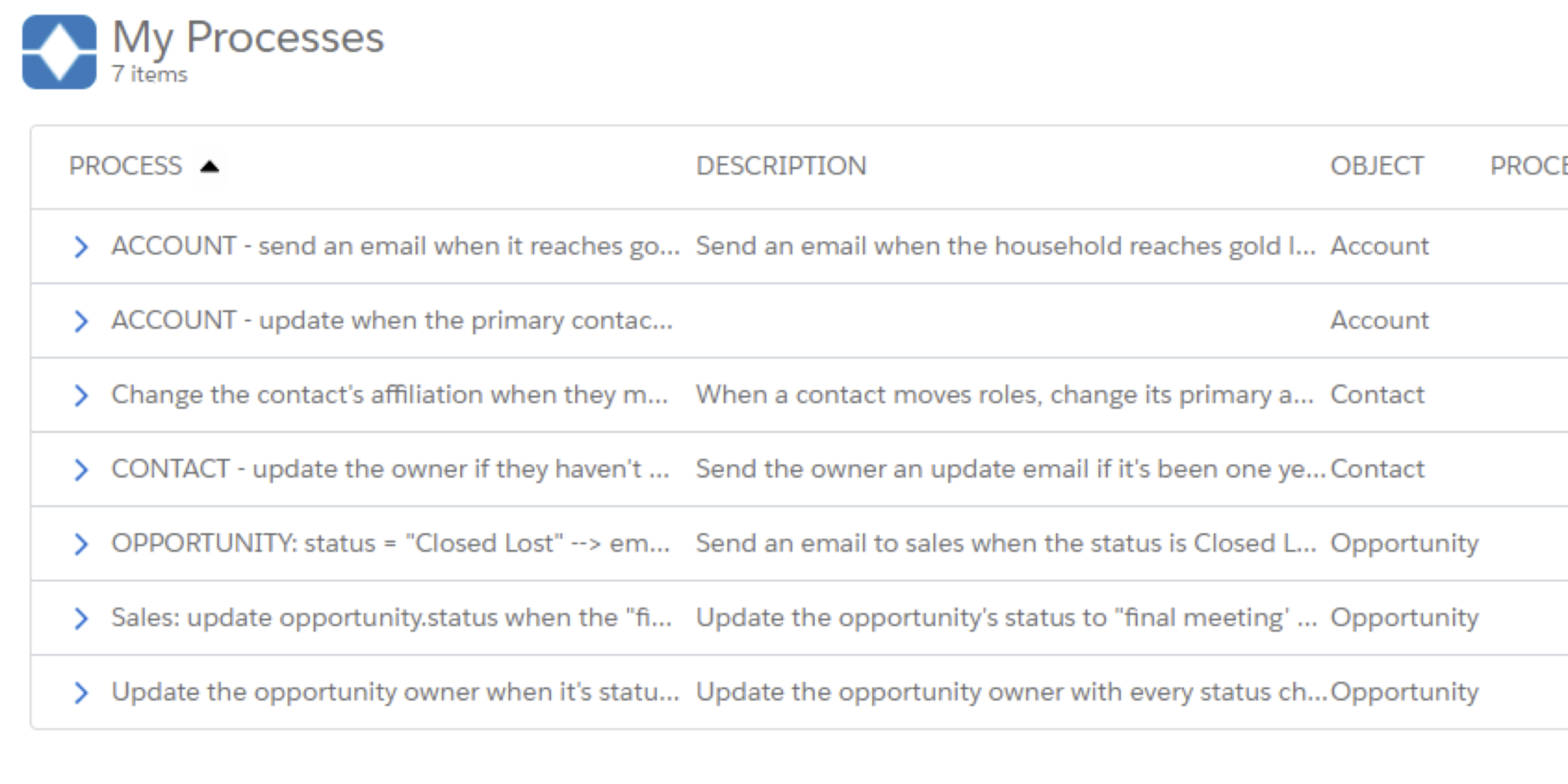 The process that I’m looking for, the one that updates the opportunity status, uses yet another schema - department first.