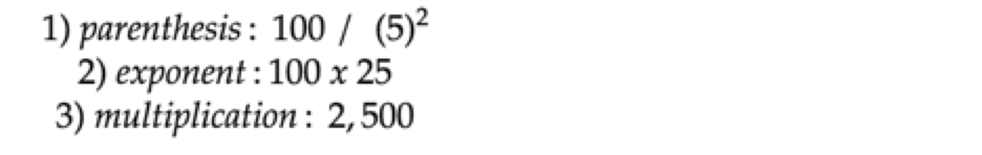 Instead, they probably broke it down for you into smaller steps. First the parenthesis, then the exponent, and then the division.